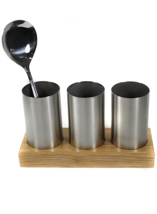 Generic - حامل ادوات تناول الطعام لطاولة الطعام مع مساحات تخزين للملعقة والشوكة والسكين، منظم بقاعدة خشبية ذاتي التصريف (دائري)
