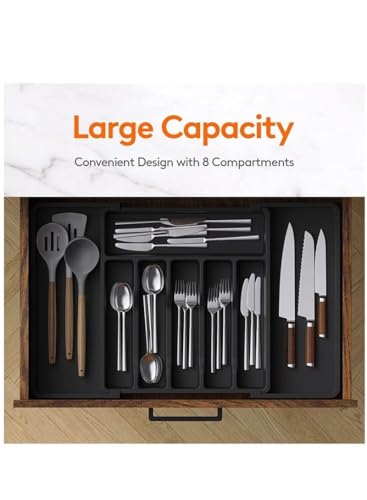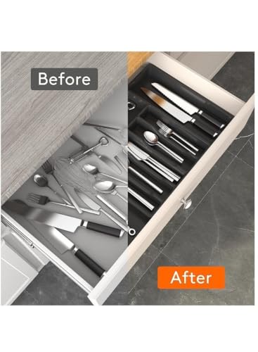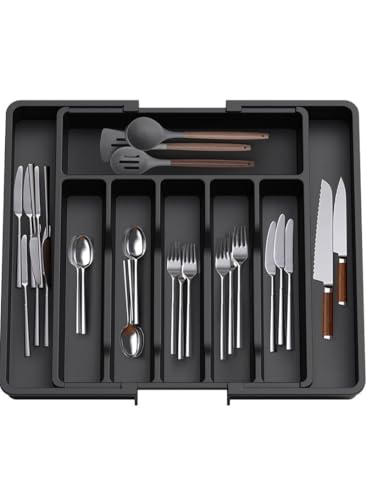 generic - منظم ادوات مائدة للادراج، صينية ادوات مطبخ قابلة للتوسيع، حامل ادوات مائدة فضية خالية من البيسفينول ايه، بلاستيك قابل للتعديل