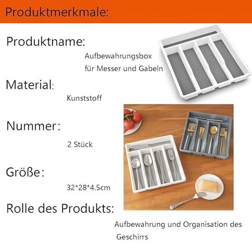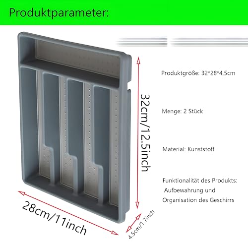 Generic - منظم أدوات المائدة للمطبخ - احصل على مطبخ خالٍ من الفوضى مع هذه العبوة المكونة من منظمين لأدراج أدوات المائدة، كل منهما يبلغ قياسه 32 × 28 × 4.5 سم ويتميز بخمسة أقسام لتوفير أقصى قدر من الراحة