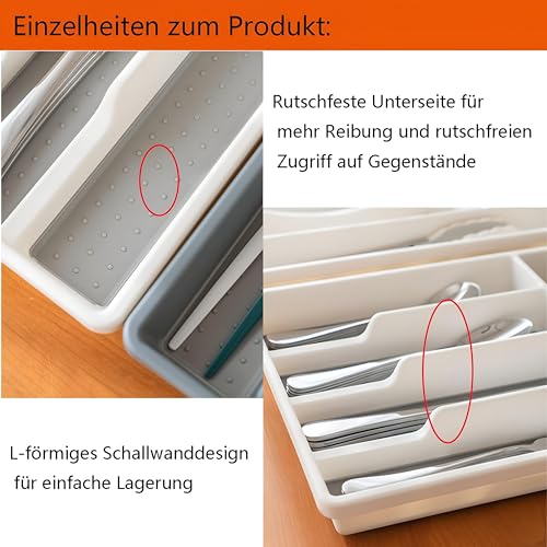 - لا يعمل درج منظم أدوات المائدة هذا على تحسين التنظيم فحسب، بل يساهم أيضًا في سير عمل المطبخ بكفاءة أكبر، مما يسمح لك بتوفير الوقت والجهد عند إعداد الطاولة أو الطهي.