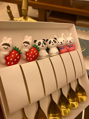 Generic - مجموعة أدوات مائدة تتضمن ملاعق تقديم مذهلة مطلية بالذهب لطاولة الطعام للكوكتيلات والحلويات بتصميمات فريدة لديكور المطبخ العصري، تأتي في صندوق من 6 قطع
