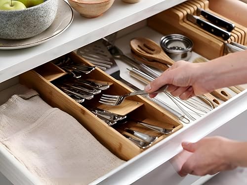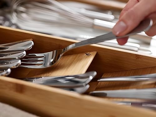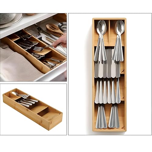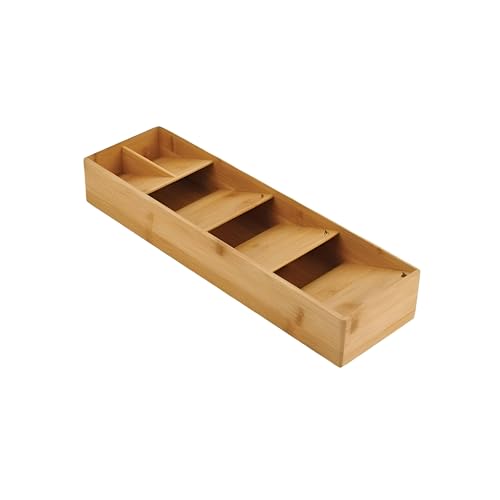 Generic - صينية تخزين ادوات تناول الطعام - درج من الخيزران مع 5 اقسام للادوات الفضية والسكاكين والملاعق، 12 × 40 سم، منظم مطبخ انيق وعملي