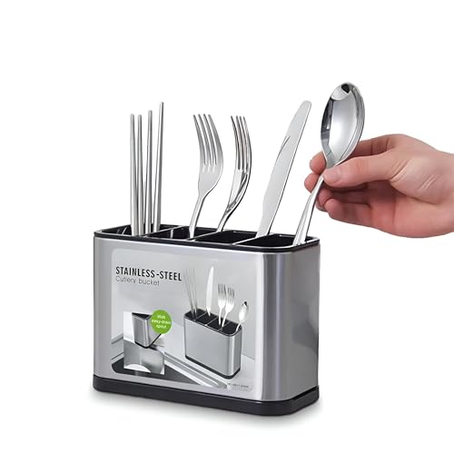- يحتوي هذا المنظم على فتحات تصريف مدمجة في الأسفل، مما يحافظ على أدواتك جافة وصحية، مما يمنع تراكم الماء. عنصر التصميم المدروس ضروري للحفاظ على نظافتها وضمان بقاء أدوات المطبخ الخاصة بك في حالة ممتازة، وخالية من الرطوبة التي قد تؤدي إلى نمو البكتيريا.