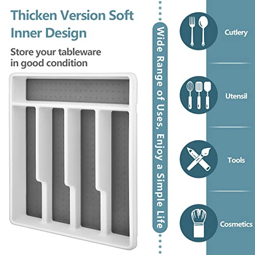 Onader - صينية ادوات تناول الطعام من اونادر، منظم ادراج ادوات المائدة البلاستيكية من 5 اقسام لتخزين ادوات المائدة والملاعق والشوك والسكاكين، مثالية للمطبخ والمنزل والمكتب، مضادة للانزلاق وموفرة للمساحة، 32.6 ×
