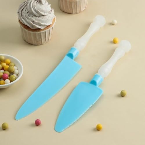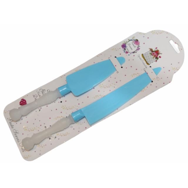 Generic - قطاعة وسكينة لتقديم الكيك، مجموعة توزيع (لون أزرق)