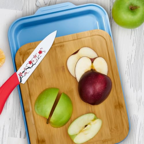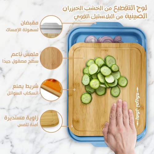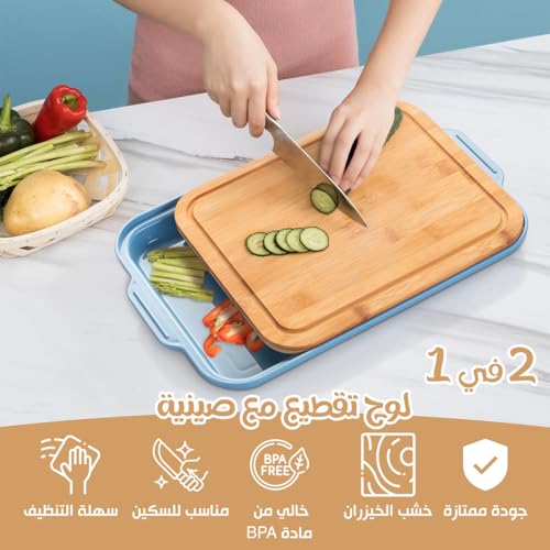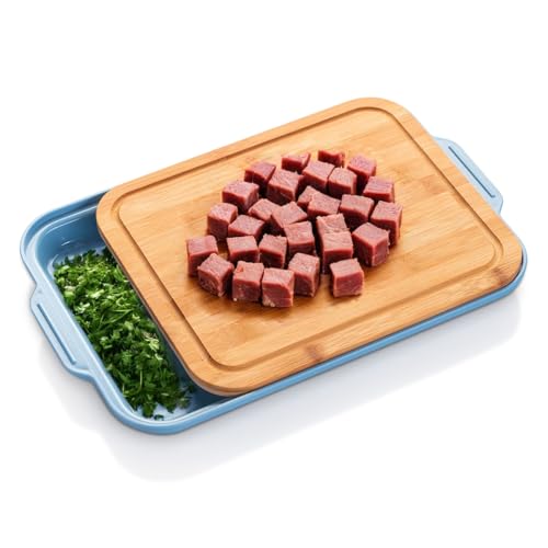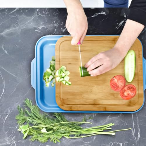 Generic - لوح تقطيع من البامبو مع صينية تخزين، لوح تقطيع للمطبخ للحوم والخضروات والفواكه والجبن، صديق للسكينة وخالي من مادة بيسفينول أ وسهل التنظيف، أزرق