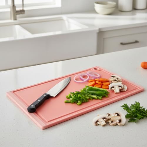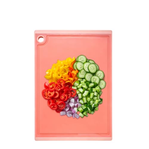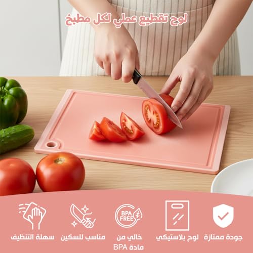 Generic - لوح تقطيع، لوح تقطيع بلاستيكي مزدوج الجوانب مانع للانزلاق، خال من البيسفينول ايه، امن للاستخدام في غسالة الصحون، لوح مطبخ للحوم والخضروات والفواكه والجبن (زهري، M)