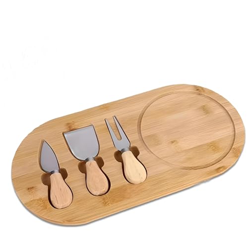 Generic - لوح تقطيع مصنوع من الخيزران الجميل مع ثلاثة سكاكين صغيرة، مثالي لصنع الجبن وأطباق اللحوم الرائعة
