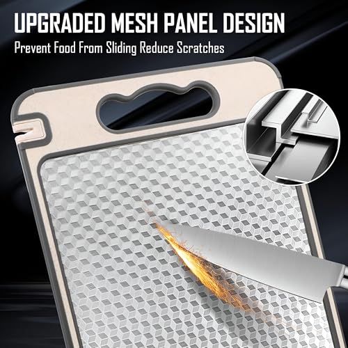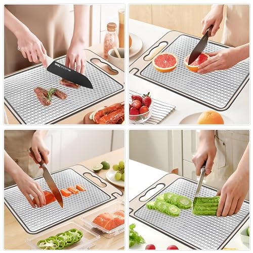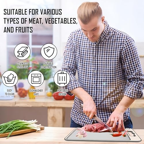 Generic - لوح تقطيع متين من الفولاذ المقاوم للصدأ على الجانبين بتصميم شبكي مقاوم للخدش للخضروات واللحوم متين وسهل التنظيف، يحافظ على فصل الطعام