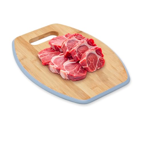 Generic - لوح تقطيع خشبي للمطبخ - لوح تقطيع من الخيزران للحوم والخضروات والفواكه والجبن، مزدوج الجوانب، صديق للسكينة، خالي من مادة بيسفينول أ، سهل التنظيف (أزرق)