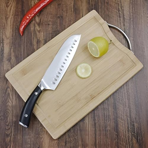 - يبلغ مقاس لوح التقطيع الخشبي 30 × 40 سم بسمك 1.8 ملم، مما يوفر سطحًا واسعًا لتقطيع أنواع مختلفة من اللحوم والخضروات بكفاءة.