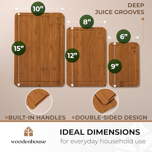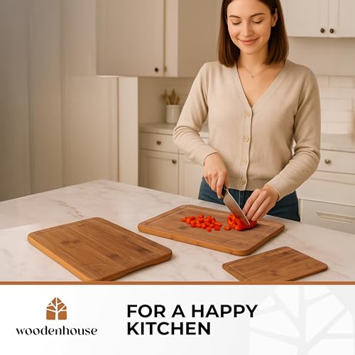 Woodenhouse - لوح تقطيع خشبي متين للمطبخ وصديق للبيئة من البامبو مناسب للتقطيع والتقديم وإعداد الطعام، لون غامق، 3 قطع