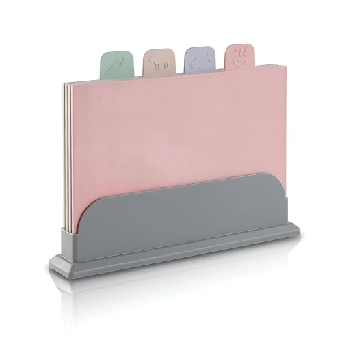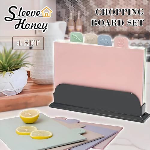 Generic - مجموعة ألواح تقطيع - أربعة ألواح ملونة محفور عليها رموز طعام مسبقًا مع رف تخزين، مصممة لمنع التلوث، مثالية لاحتياجات المطبخ المتنوعة، متوفرة بألوان متعددة