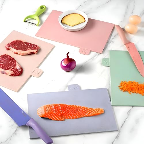 - تعمل هذه المجموعة المكونة من أربعة ألواح تقطيع مرمزة بالألوان مع حامل تخزين على تعزيز سلامة الغذاء من خلال الإشارة بوضوح إلى نوع الطعام - اللحوم النيئة أو الأسماك أو الخضراوات أو الأطباق المطبوخة - مما يقلل من التلوث المتبادل ويجعل تحضير الوجبات أكثر أمانًا ونظافة.