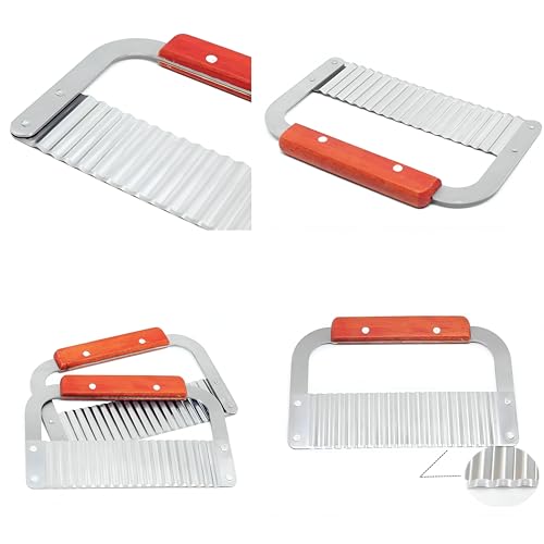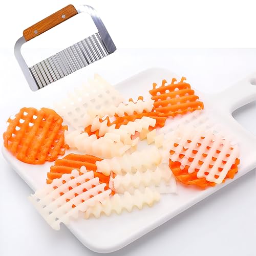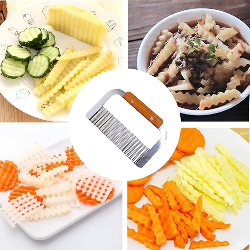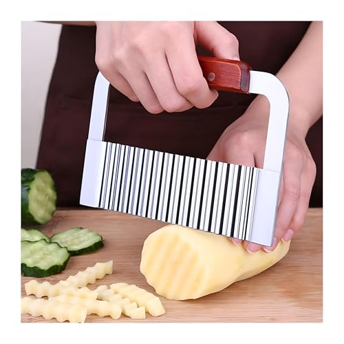 Generic - تقطيع الخضروات - سكين الفولاذ المقاوم للصدأ دائم مع حافة متموجة ، مثالية لقطع البطاطا المقلية والخضروات الأخرى ، مجهزة بمقبض خشبي مريح لسهولة الاستخدام.