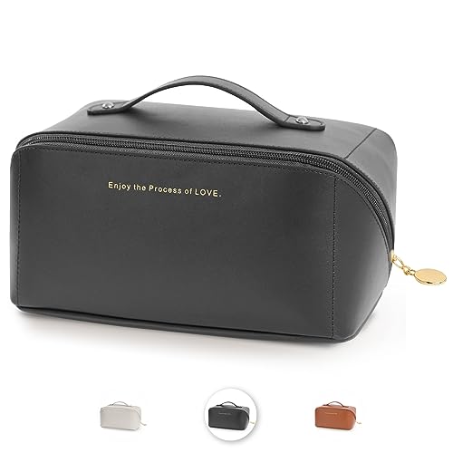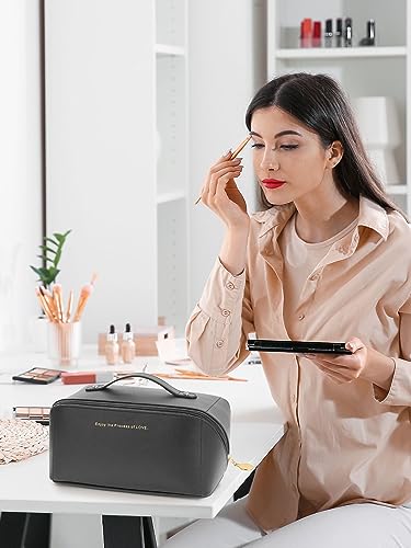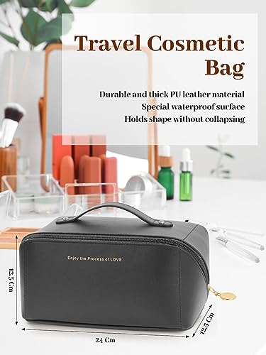 Cutyerbee - شنطة مستحضرات تجميل بسعة كبيرة تخزين التجميل للسفر مع مقبض مكياج محمولة بسحاب مقصورات ادوات الزينة اسود بولي يوريثين من كوتييربي