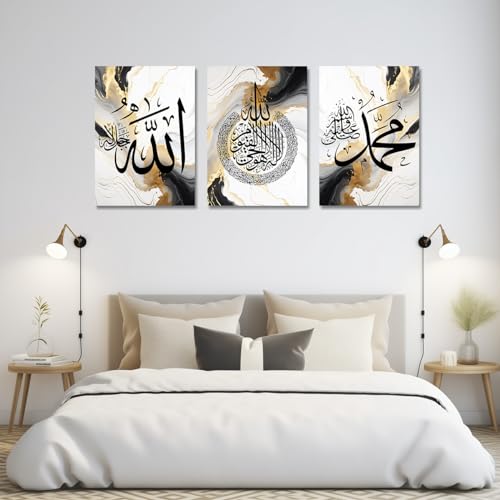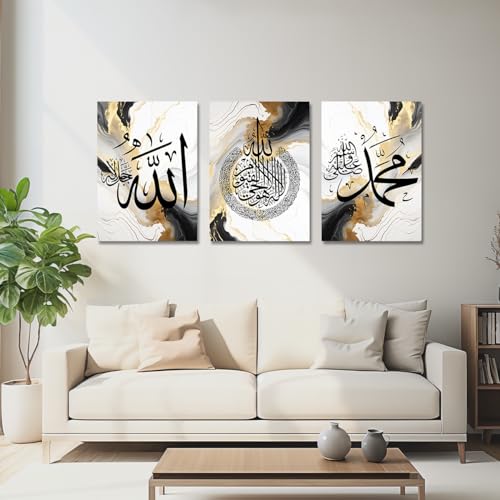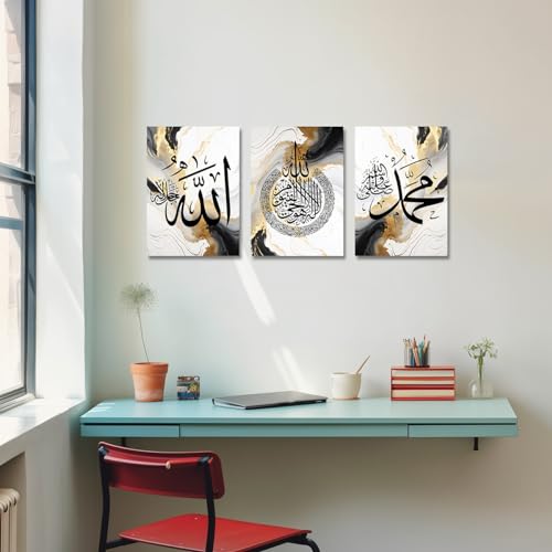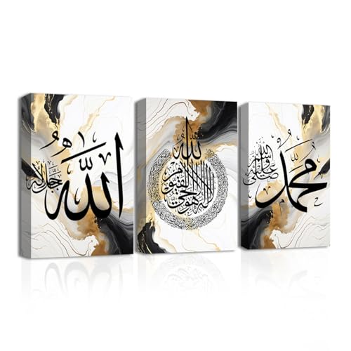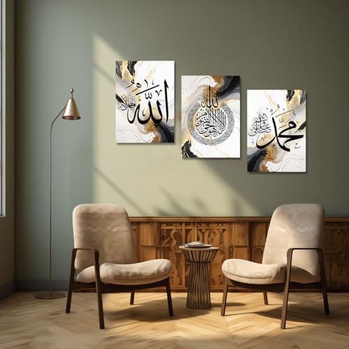 CXHOSTENT - لوحات جدارية من سي إكس هوستنت، طباعة فنية إسلامية لتزيين غرف المنزل بتصميم آية الكرسي، لون إسلاميك-1، مقاس 30.48 × 40.64 سم، مجموعة من 3 قطع