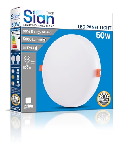 Sian Tech - مصباح سقفي كشاف بانل بلفونيرة 50وات ابيض خارج لطش 30*30سم 6500كيلفن – 5000 ليومن جسم الومنيوم بالكامل ضمان 30شهر تعيش حتي 10سنوات من سيان تك