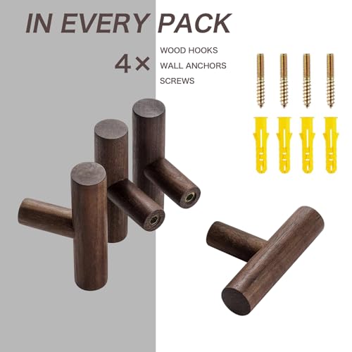 CyanCloud - أوتاد خشبية طبيعية تثبت على الحائط، لتعليق القبعات والمناشف والشنط والحبال والمعاطف، خشب الجوز، عبوة من 4 قطع، منسيانكلاود، الحد الأقصى للوزن الموصى به: 5.0 كيلوجرام، متعدد الألوان