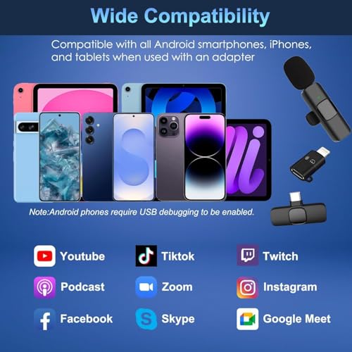 - التوصيل والتشغيل: لا حاجة لأشياء إضافية مثل المحولات أو التطبيقات. ميكروفون لهواتف سامسونج أو اندرويد مع منفذ USB-C ومتوافق أيضًا مع سلسلة ايفون 16 وسلسلة ايفون 15، ابدأ في تسجيل الصوت والفيديو دون أي متاعب. استمتع بالتسجيل بدون استخدام اليدين أثناء التنقل مع هذا الميكروفون اللاسلكي الصغير لأجهزة ايفون واندرويد.