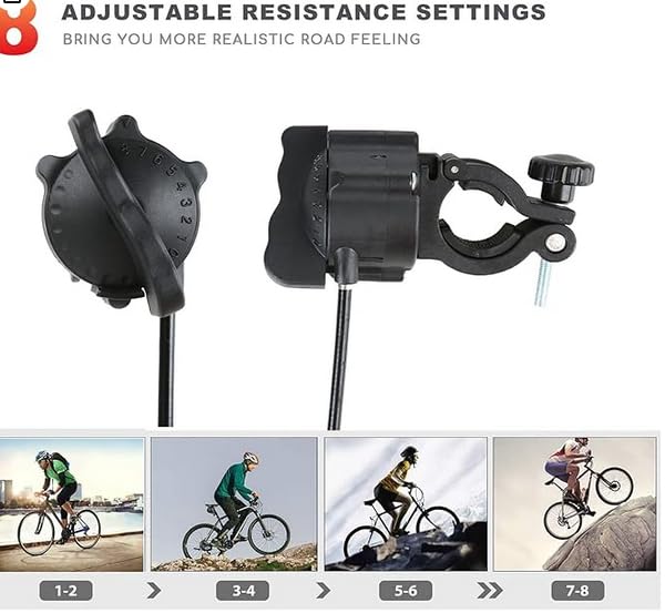 - 🚴 8 مستويات مقاومة – يتميز جهاز تدريب الدراجة بـ 8 درجات من المقاومة المغناطيسية، مع وحدة تحكم في المقاومة مثبتة على المقود تتيح لك ضبط المستوى بسهولة وراحة. يمكنك اختيار المنحدر الخاص بك من مسطح إلى ميلان حاد، ليحاكي جميع أنواع التلال والطرق والفواصل الزمنية.