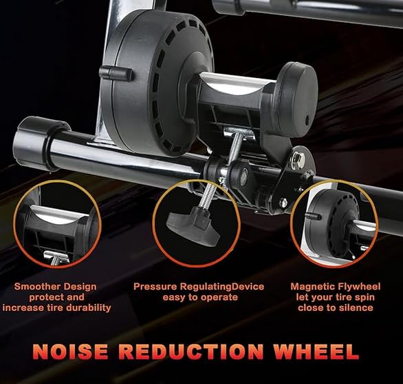 - 🚴 تقليل الضوضاء – جهاز تدريب الدراجة مزود بعجلة مقاومة تقلل من الضجيج، مما يجعل ركوب الدراجة هادئًا جدًا، وهو مثالي لسكان الشقق أو الأشخاص الذين يشاركون السكن مع زملاء. (إذا كان الضجيج عاليًا، فذلك يعود بشكل كبير إلى نوعية المواد ونمط سطح إطارات الدراجة. نقترح عليك تفضيل استخدام دراجات الطرق).