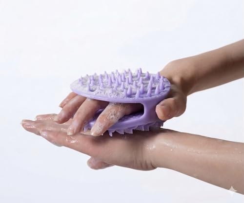 - شكل مريح باليد: تصميم بيضاوي مريح مع قبضة أصابع يسمح بسهولة التعامل والتحكم أثناء الاستخدام، مثالي لغسل الشعر بالشامبو وتنظيف الجسم
