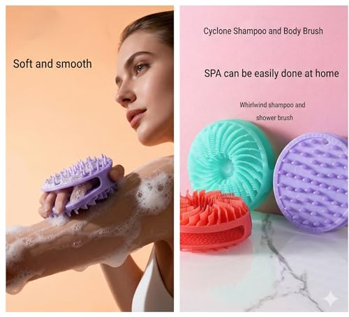 Generic - فرشاة حمام سيليكون مزدوجة الجوانب من سايكلون، مجموعة شامبو وفرشاة دش، متعددة الالوان، عبوة من قطعتين