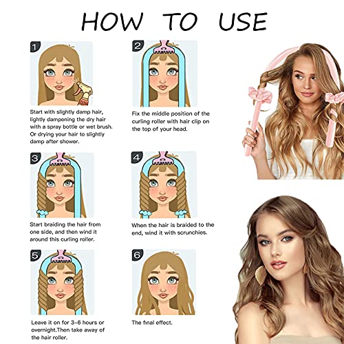 - أداة تجعيد الشعر بدون حرارة سهلة الاستخدام: أداة تجعيد الشعر بدون حرارة للاستخدام قبل الخروج من المنزل، استخدمي مشطًا مدبب لفصل خصلة صغيرة من الشعر الأطول قليلاً، ولفيها على قضيب التمويج وثبتها بشريط مطاطي دون تسخين. ستحصلين على شعر مجعد جميل في الصباح التالي، ولن يسبب طوق الرأس في أي إزعاج أثناء النوم.