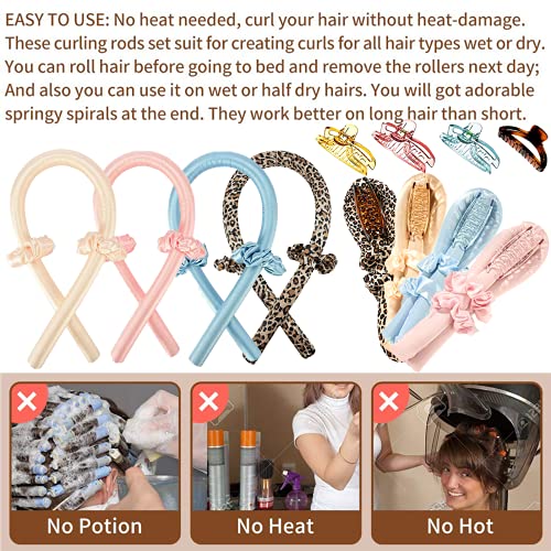 cygjing - بكرات شعر بدون حرارة، بكرات شعر ناعمة الملمس للنوم، أداة تصفيف وتجعيد الشعر بنفسك، شريط تمويج بدون حرارة، بكر شعر من المطاط بدون حرارة مناسبة لمعظم تسريحات وتصفيفات الشعر (أزرق)