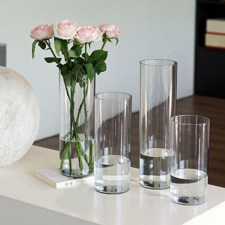 Generic - طقم مزهريات زجاجية أسطوانية، 5 قطع، شفافة، متدرجة الارتفاع، للزهور والديكور المنزلي العصري