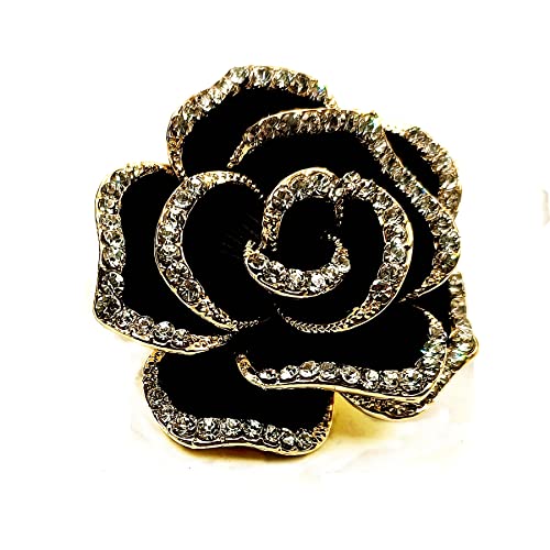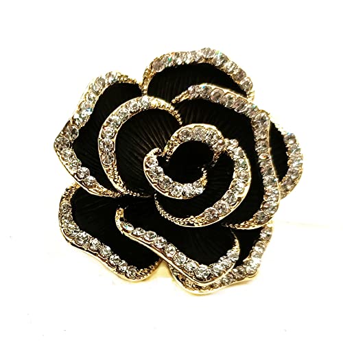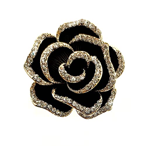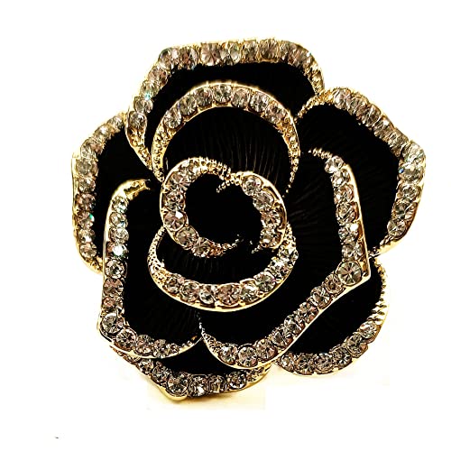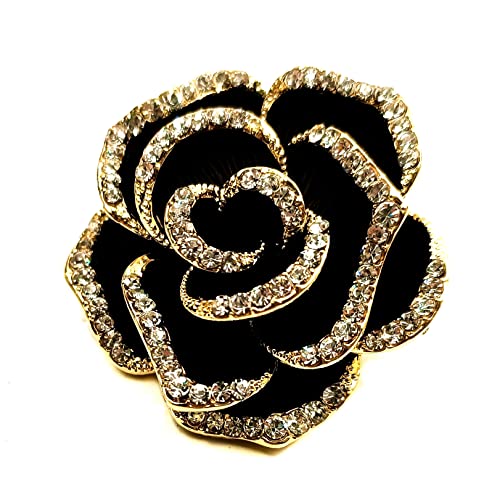 CYPINA - دبوس بروش رائع بحجر الزركونيا المكعب على شكل بتلات سوداء وزهرة الكاميليا، مجوهرات الكنيسة