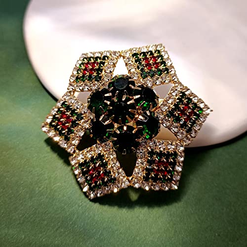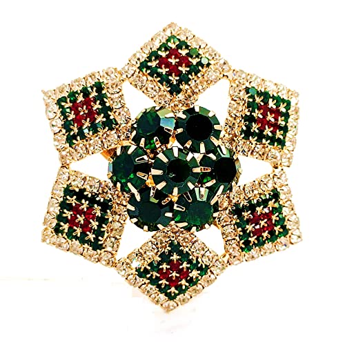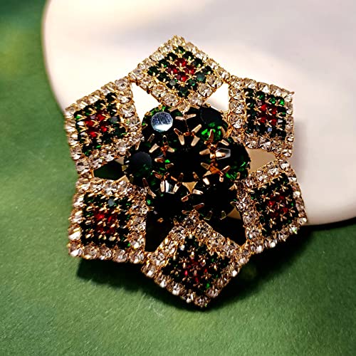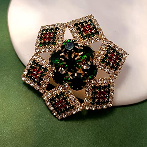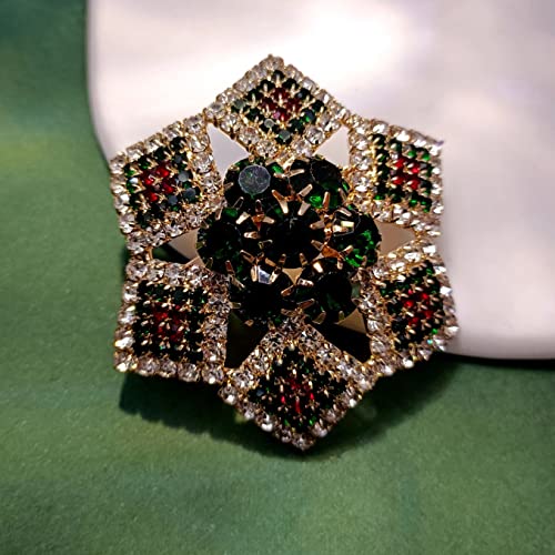 CYPINA - دبوس بروش من خليط معدني من الستيل ومرصع بالكريستال واحجار دائرية ومربعة بلون اخضر بتصميم مستوحى من المجوهرات الهندية التقليدية من سيبينا, خليط معدني صلب, كريستال