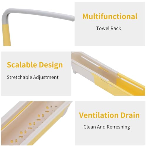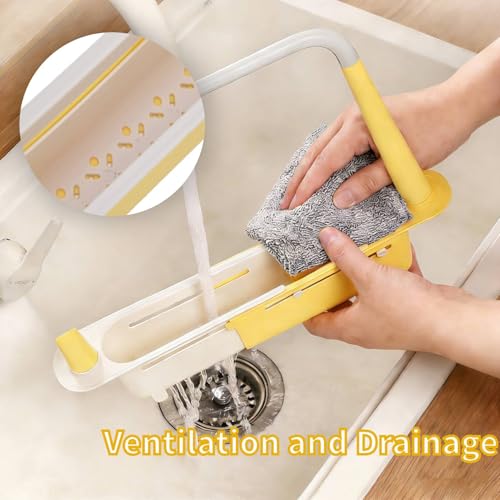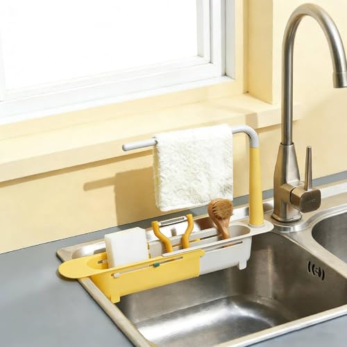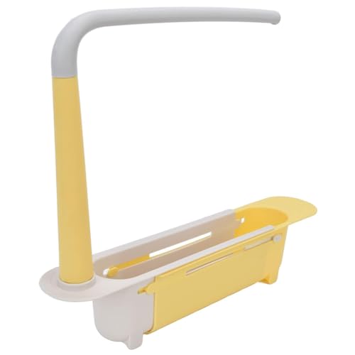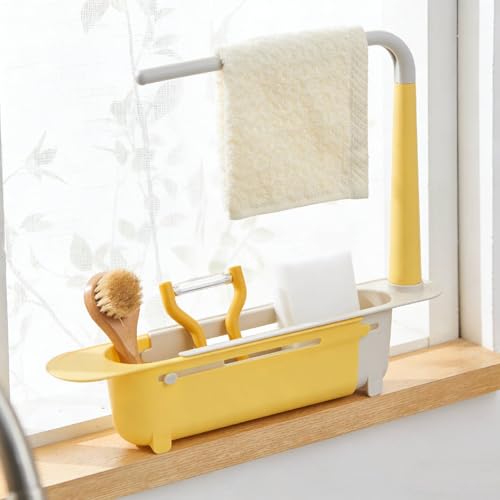 Cyrank - رف تخزين تلسكوبي للحوض منظم حوض قابل للتمدد لوح تصريف للتعديل صينية واسفنجة حامل صابون اصفر من سيرانك البولي بروبلين