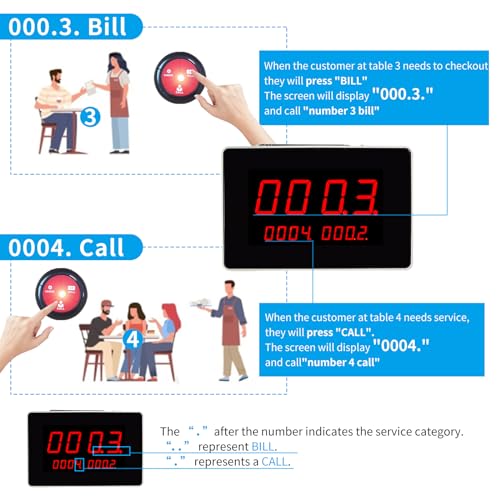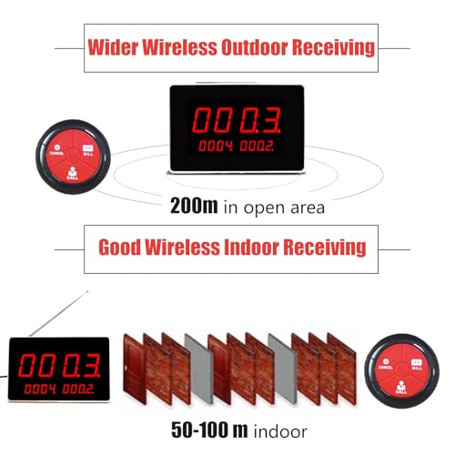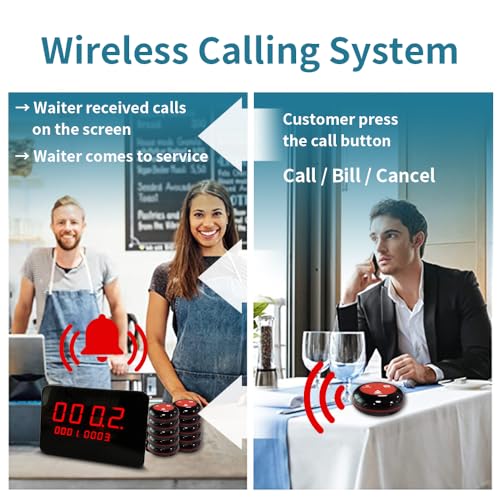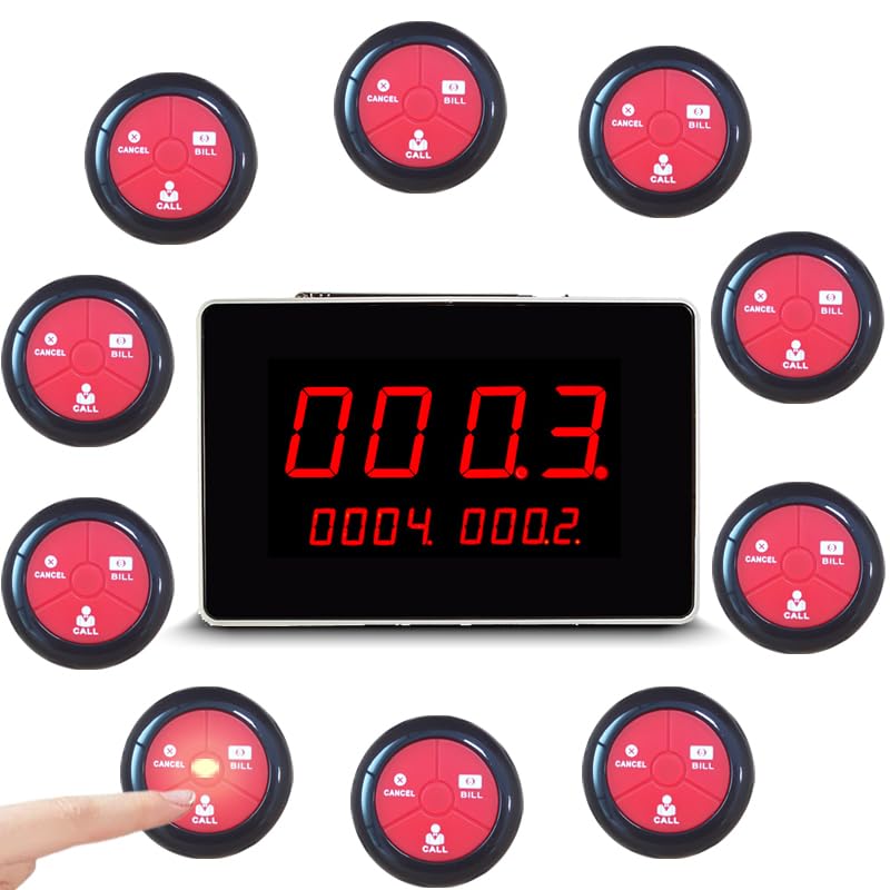 CYSSJF - نظام نداء المطاعم – نظام نداء لاسلكي للعملاء والمرضى، يشمل 10 أزرار نداء مقاومة للماء و1 شاشة استقبال، مناسب للمطاعم، المستشفيات، العيادات، دور الرعاية، ومقدمي العناية المنزلية من CYSSJF