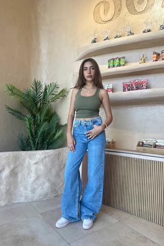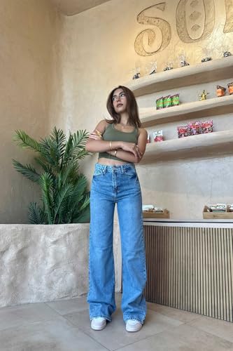 CZR CIZARO - بنطلون جينز فضفاض بخصر مرتفع للنساء من سي زد ار سيزارو
