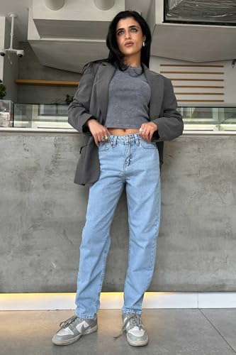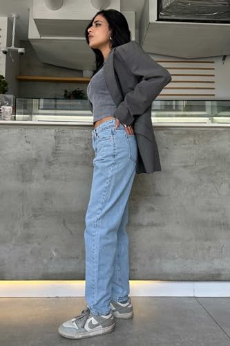 CZR CIZARO - بنطلون جينز موم للنساء من سي زد ار سيزارو - فاتح باهت