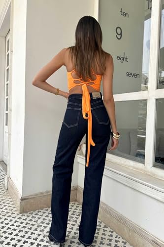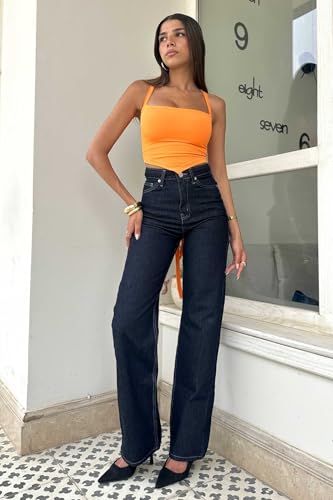 CZR CIZARO - بنطلون جينز بقصة ساق مستقيمة وخصر مرتفع للنساء من سيزارو