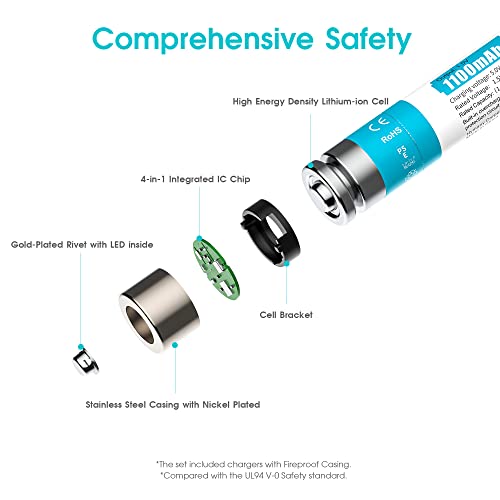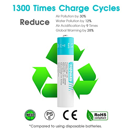 - 【قابلة للاستخدام على نطاق واسع】متوافقة مع أي جهاز يعمل ببطاريات ايه ايه ايه، كما تتوفر بطاريات ايه ايه. بفضل خصائص عملية بطاريات ليثيوم ايون، فإن معدل 1% الفريد من بطاريات ايه ايه ايه القابلة لإعادة الشحن يضمن عمر خدمة طويل، مما يعني أنها لا تزال تحتفظ بنسبة 80% من سعتها بعد 36 شهرًا من عدم النشاط.