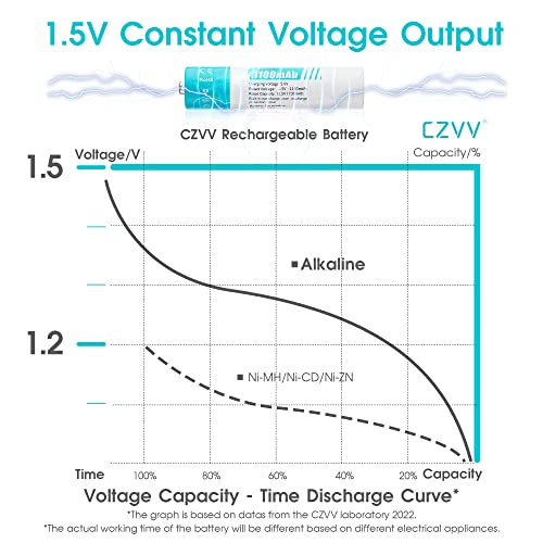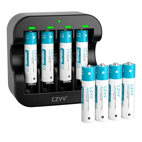 czvv - بطاريات ايه ايه ايه 1.5 فولت قابلة لإعادة الشحن من سي زد في في، بطاريات مع شاحن فائق السرعة 2 ساعة، متينة وعالية السعة 1100 مللي وات في الساعة، دورة 1500 مرة، مخرج ثابت، 8 قطع (لون أسود)