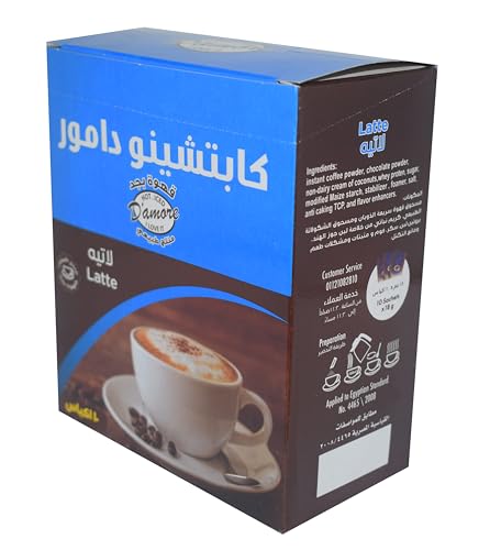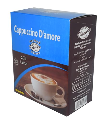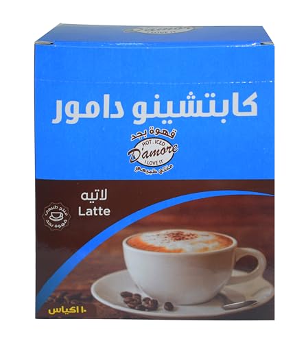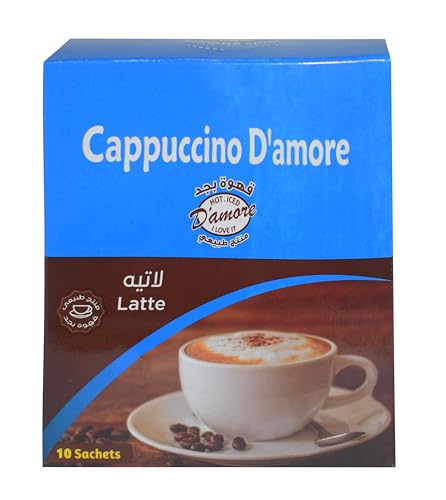 D'amore - قهوة دامور الفورية لاتيه كابوتشينو في ظروف، صندوق بتحميص متوسط، 18 جرام × 10 ظروف