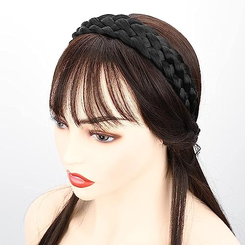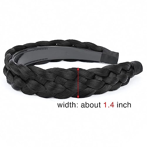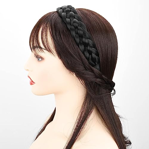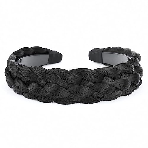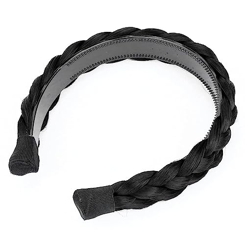 D-DIVINE - طوق رأس صناعي مضفر للنساء من دي-ديفاين، مع ضفائر على شكل أسنان، مضفرة بشعر صناعي (لون أسود)