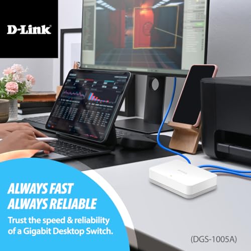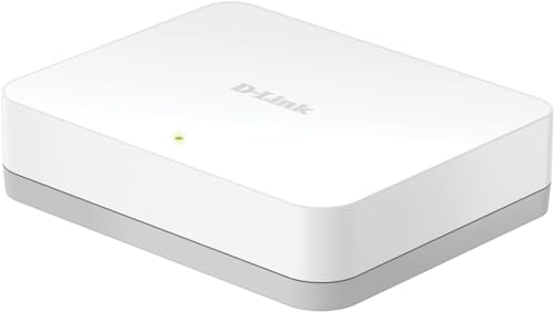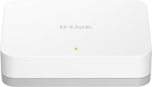 D-Link - مفتاح شبكة جيجابت إيثرنت بـ5 منافذ سهل التوصيل والتشغيل، موزع إيثرنت غيرلمدار بدون مروحة لتحسين حركة المرور من دي-لينك (DGS-1005A-AMZ)، أبيض