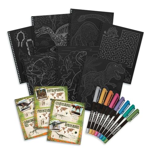 - تتضمن أيضًا تعليمات الألوان وصفحات معلوماتية عن الديناصورات