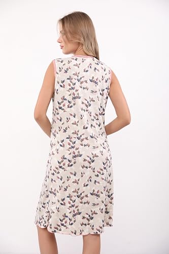 Dabbagh - فستان بيت حريمي بدون أكمام من الدباغ – قميص نوم طويل مريح للنوم والبيت، دانتيل أنيق وطباعة رقيقة، مثالي للإطلالة اليومية، كاش مايو