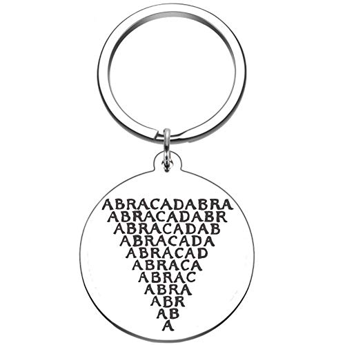 Dacai - ميدالية مفاتيح من الفولاذ المقاوم للصدأ من داكاي، مصقولة جيدًا ومزينة بنقش محفور بالليزر للكلمة السحرية "Abracadabra" للتعويذات والشفاء (قطعتان)