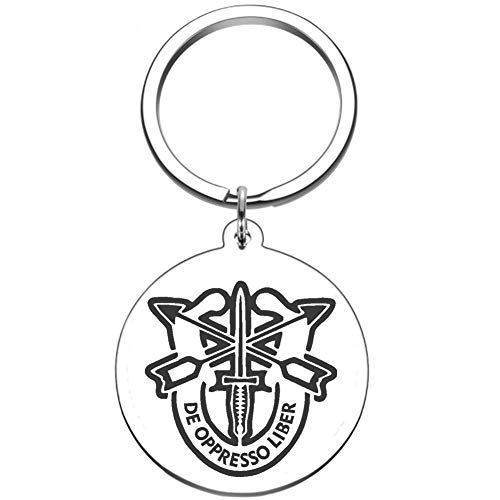 Dacai - سلسلة مفاتيح فضية محفورة بالليزر للقوات الخاصة الامريكية من الستانلس ستيل للرجال والنساء من قطعتين