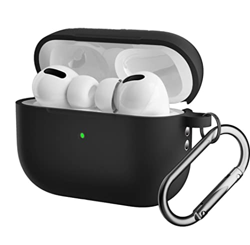 Dado - جراب من السيليكون الناعم بتغطية كاملة وضوء LED امامي مرئي مع سلسلة مفاتيح لعلبة سماعات ايربودز برو الجيل الثاني لون اسود من دادو