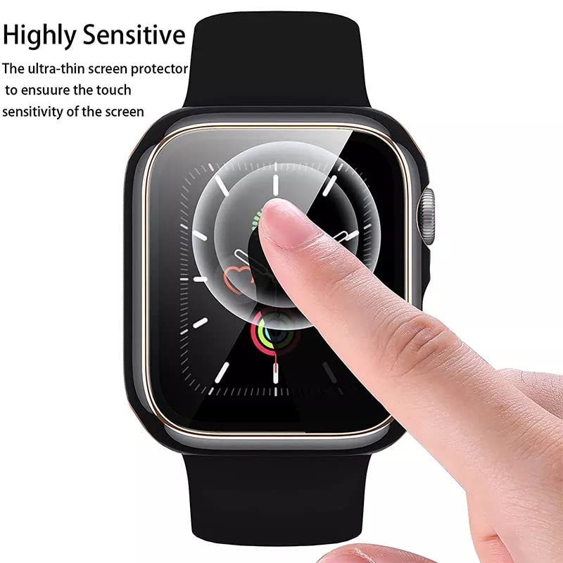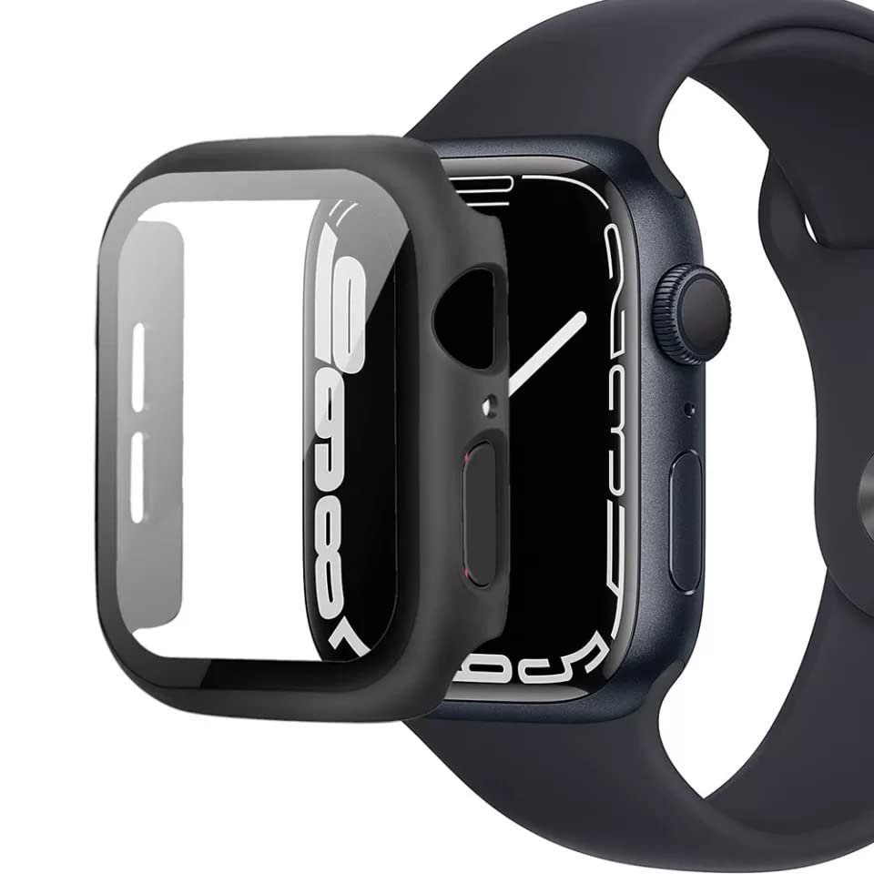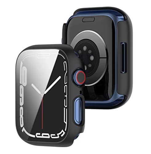 Dado - هيكل واقي + شاشة حماية متوافقة مع سلسلة آبل اي ووتش 7 من دادو، زجاج مقوى مقاوم للخدش مع حافظة حماية للساعة (لون أسود، 45 ملم)
