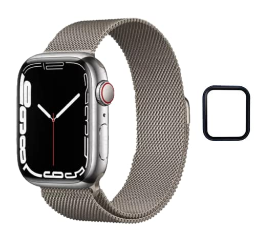Dado - سوار ميلانو من الستانلس ستيل بتصميم شبكي اسب لساعة ابل 2 3 4 5 6 7 SE مع شاشة حماية إضافية- مقاس 41 ملم- 40 38 ملم دادو فضي